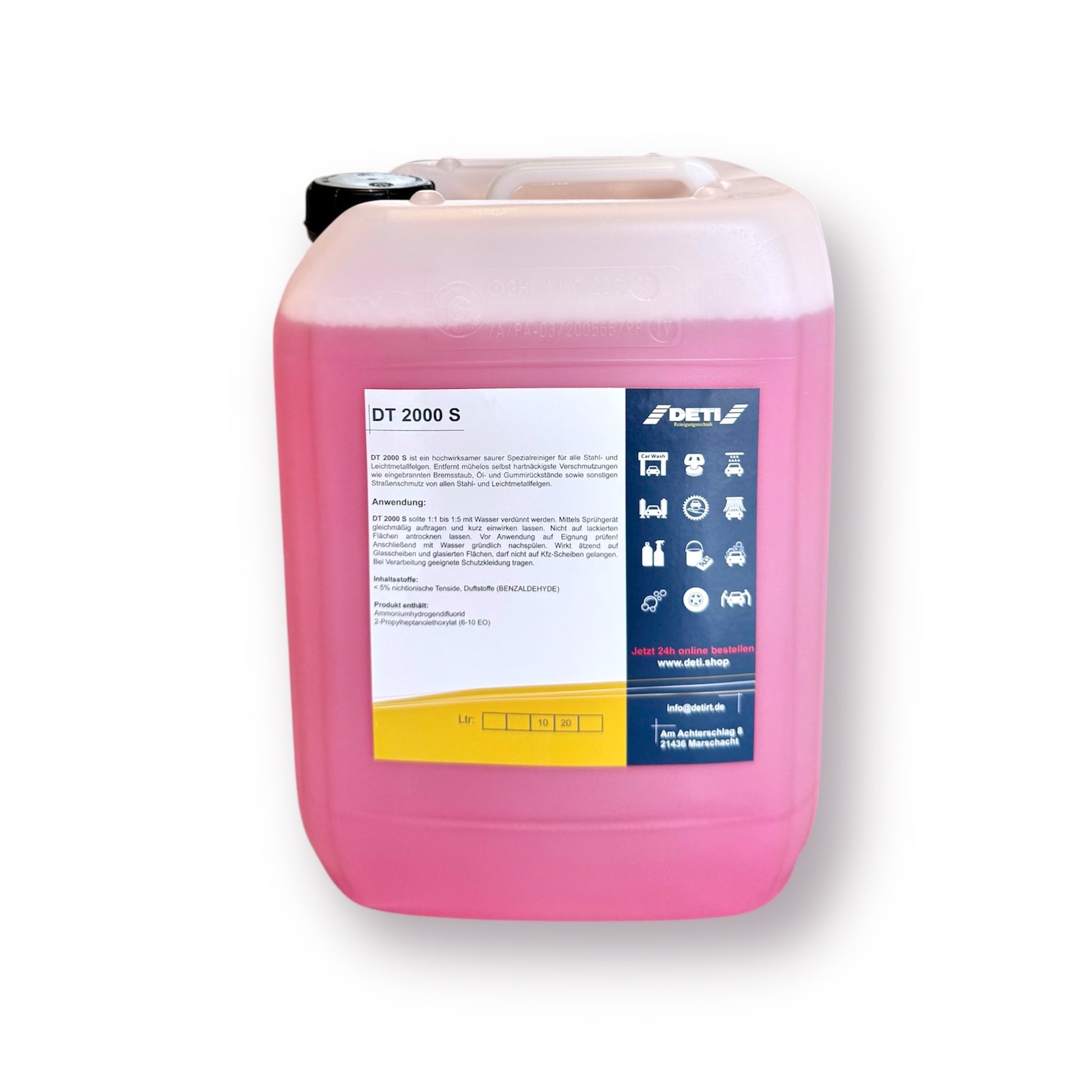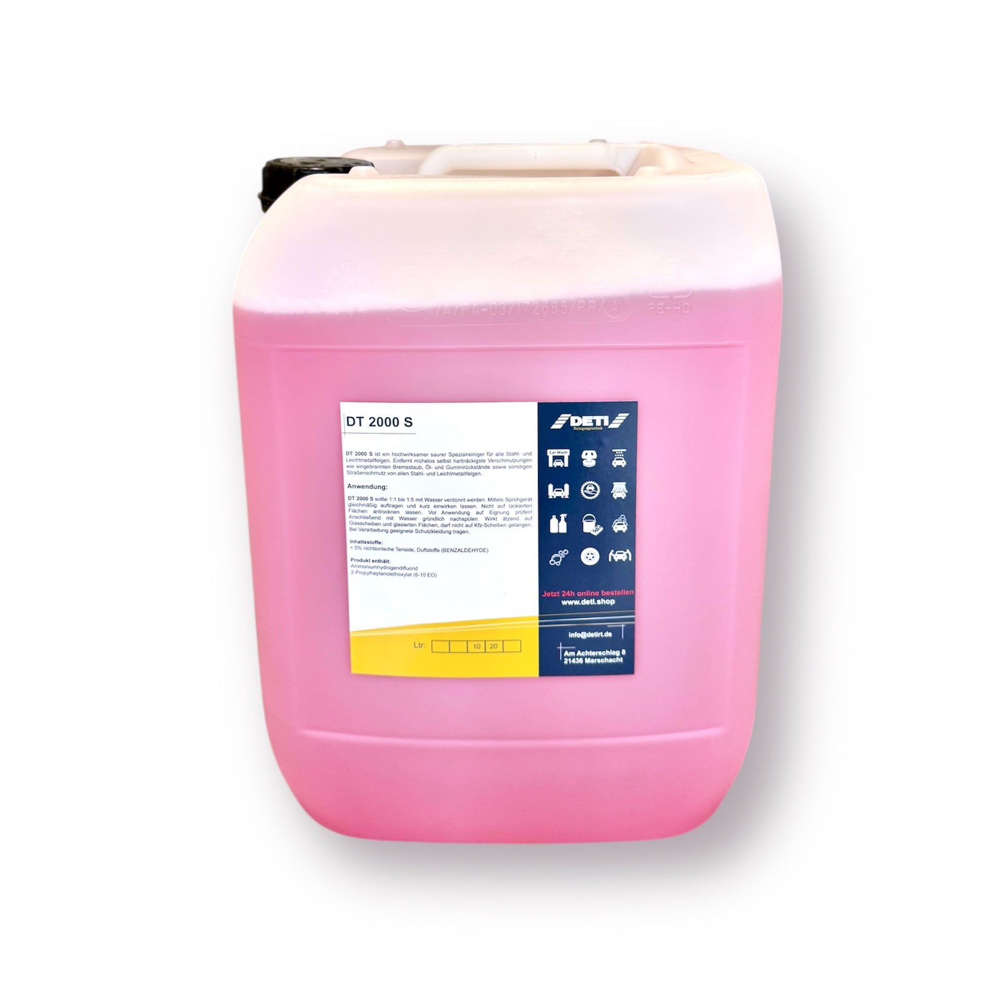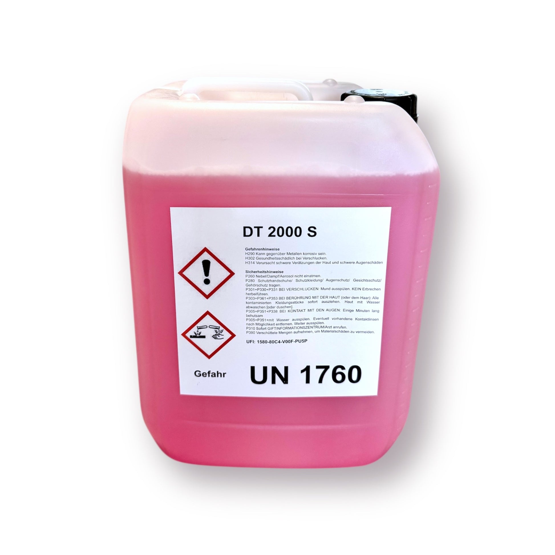 DT 2000 S sollte 1:1 bis 1:5 mit Wasser verdünnt werden. Mittels Sprühgerät gleichmäßig auftragen und kurz einwirken lassen. Nicht auf lackierten Flächen antrocknen lassen. Vor Anwendung auf Eignung prüfen! Anschließend mit Wasser gründlich nachspülen. Wirkt ätzend auf Glasscheiben und glasierten Flächen, darf nicht auf Kfz-Scheiben gelangen. Bei Verarbeitung geeignete Schutzkleidung tragen.